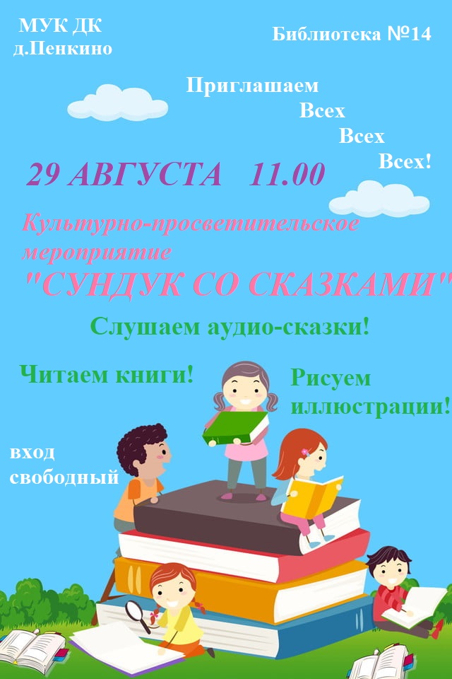 29 августа 11:00 - сундук со сказками30 августа 12:30 - веселые старты